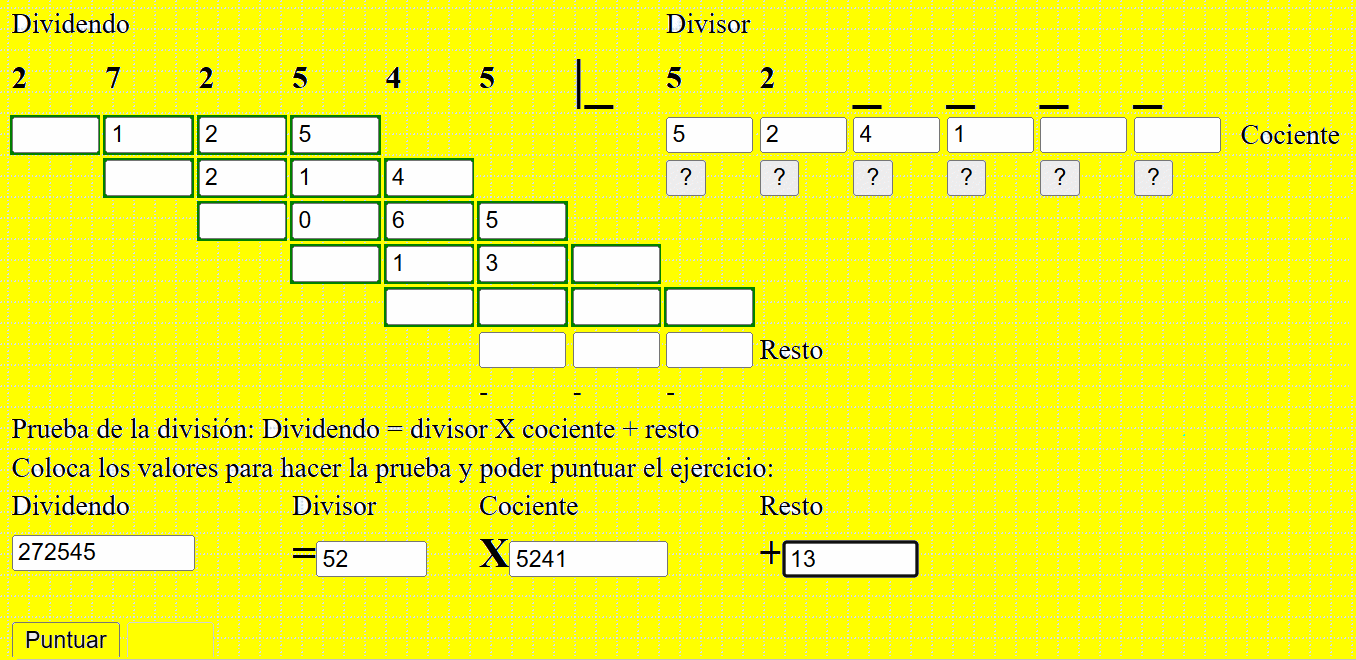 Coloca los valores para hacer la prueba y poder puntuar el ejercicio: